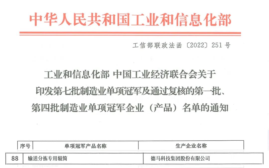 近日,国家工信部、中国工业经济联合会发布第七批国家级制造业单项冠军名单,德马科技集团股份有限公司再度斩获国家级殊荣。