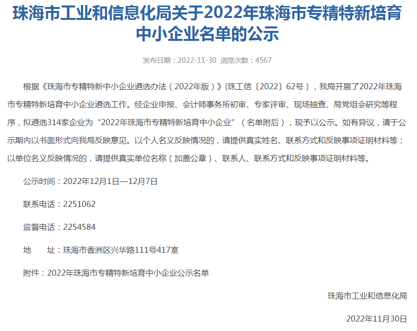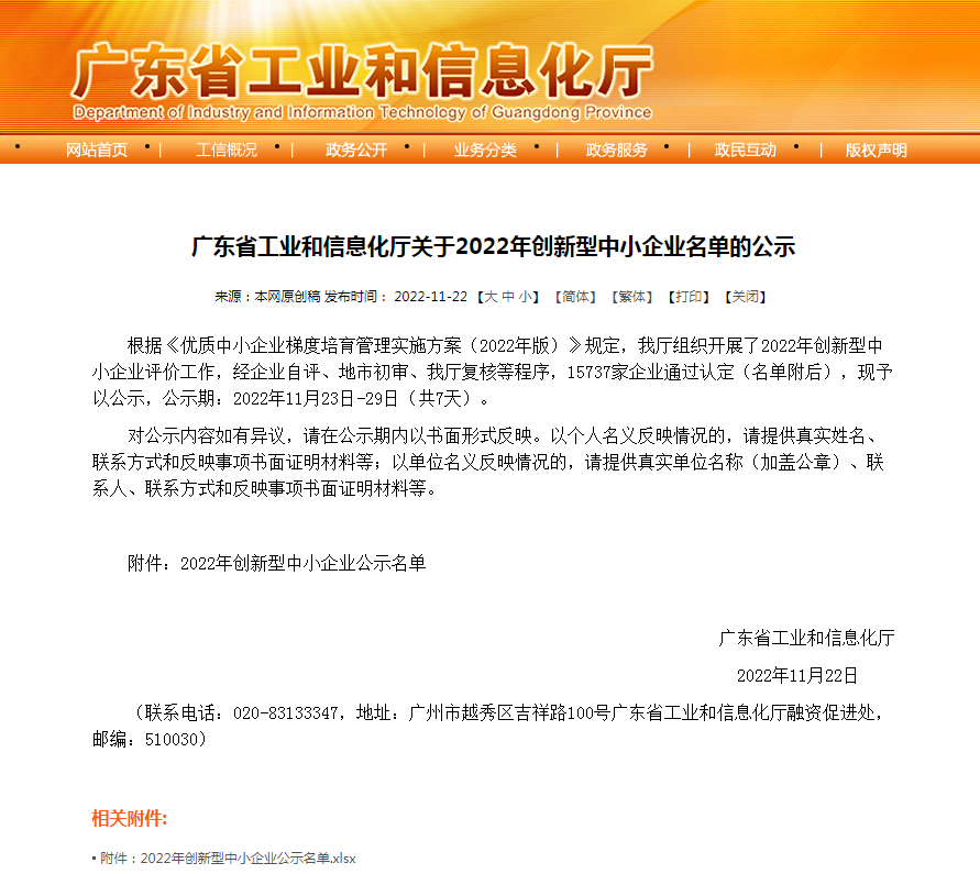 根据广东省工业和信息化厅《广东省工业和信息化厅关于2022年创新型中小企业名单的公示》文件和珠海市工业和信息化局《珠海市工业和信息化局关于2022年珠海市专精特新培育中小企业名单的公示》,广东泰坦智能动力有限公司入选2022年广东省“创新型”中小企业名单及珠海市2022年“专精特新”中小企业名单。
