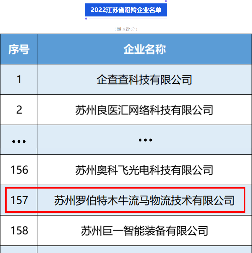 2022年12月9日江苏省独角兽、潜在独角兽和瞪羚企业评估结果发布。木牛流马科技赋能勇立潮头,成功入选2022年度江苏省“瞪羚企业”。