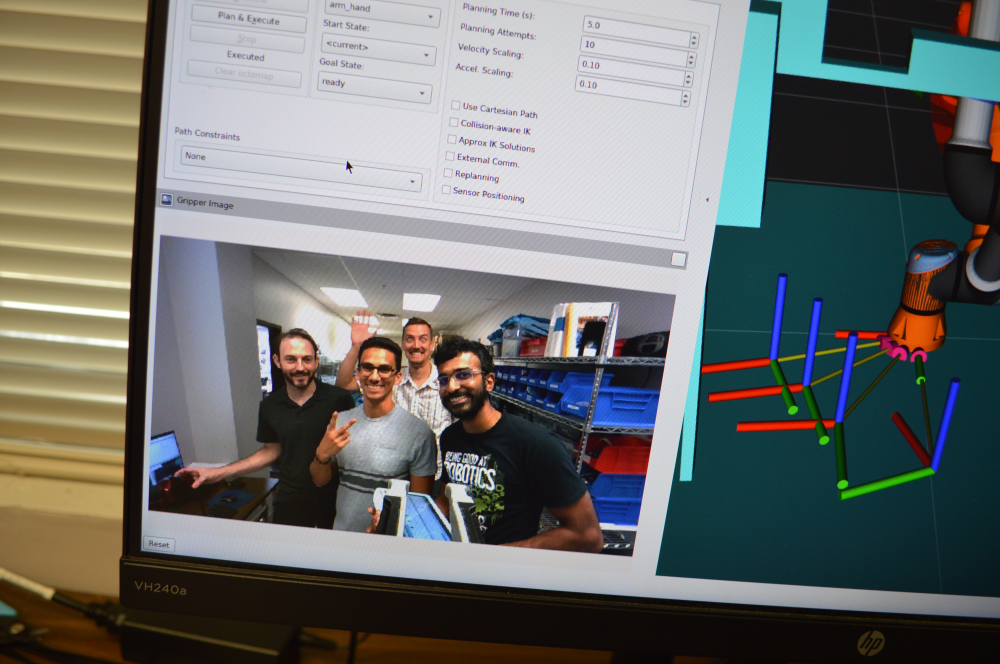 在与其他亚特兰大医院确认我们的发现后,我们开始设计和开发我们的第一个原型。尽管机器人机械手的价格继续下降,但我们的自举方法已达到购买专业手臂的极限。所以我们变得斗志昂扬。感谢Universal Robots借给我们一臂之力!在不到 2 个月的时间里,我们开发了我们的第一个概念验证原型。感谢Gwinnett Technical College的工作人员允许我们在他们的设施中测试我们的原型。