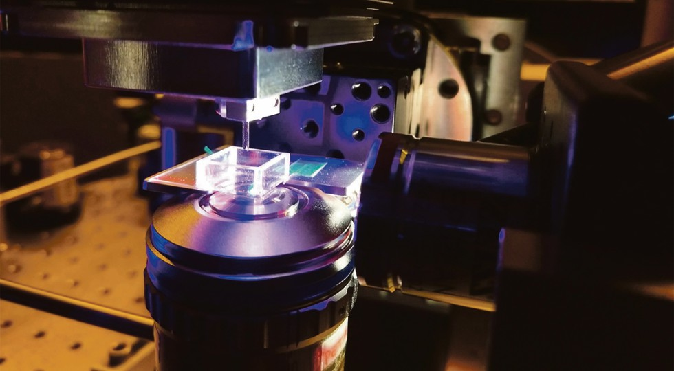 打印程序:首先,使用蓝光从下方将分层图像投射到塑料中。这选择性地激活了沿光束通道的材料。然后红色激光从侧面发射一种“光片”进入建筑空间并使水平面变硬。这个过程重复了一千次——眨眼之间。超细部件相应快速完成。它们仍然很小。但缩放似乎是可能的。KIT 的研究人员已经在与国际合作机构合作。如果他们成功了,组件很快就会像科幻电影中那样具体化。