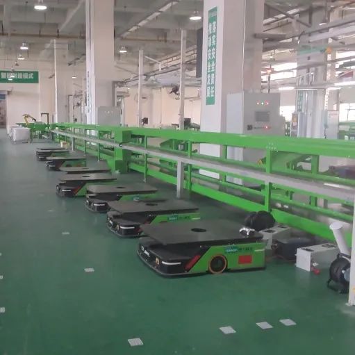 同时引进AGV物流转运,实现一键叫料,安全效率大幅提升,提高整体产线自动化水平,产线平衡率大幅提升,杜绝堵料现象。