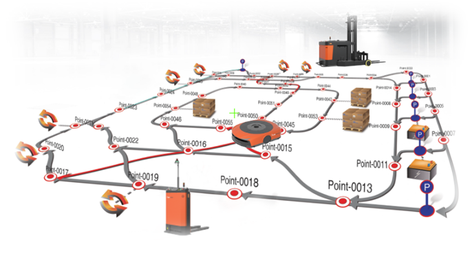 同步欧洲VDA5050标准接口,实现7种车型,三种导航方式,多种品牌同一套地图,混合调度管理。