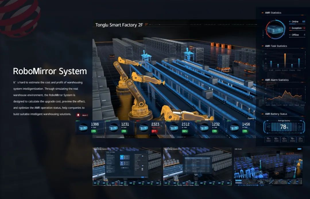 传统仓储行业升级成智能化仓储,通过RoboMirror System可以模拟现实仓储环境,计算升级成本,数字化预演及优化AMR的运行路径和任务分发情况,并监控AMR的整体使用效率,提高项目实施和交付的效率,帮助企业打造合适的智能化升级方案。