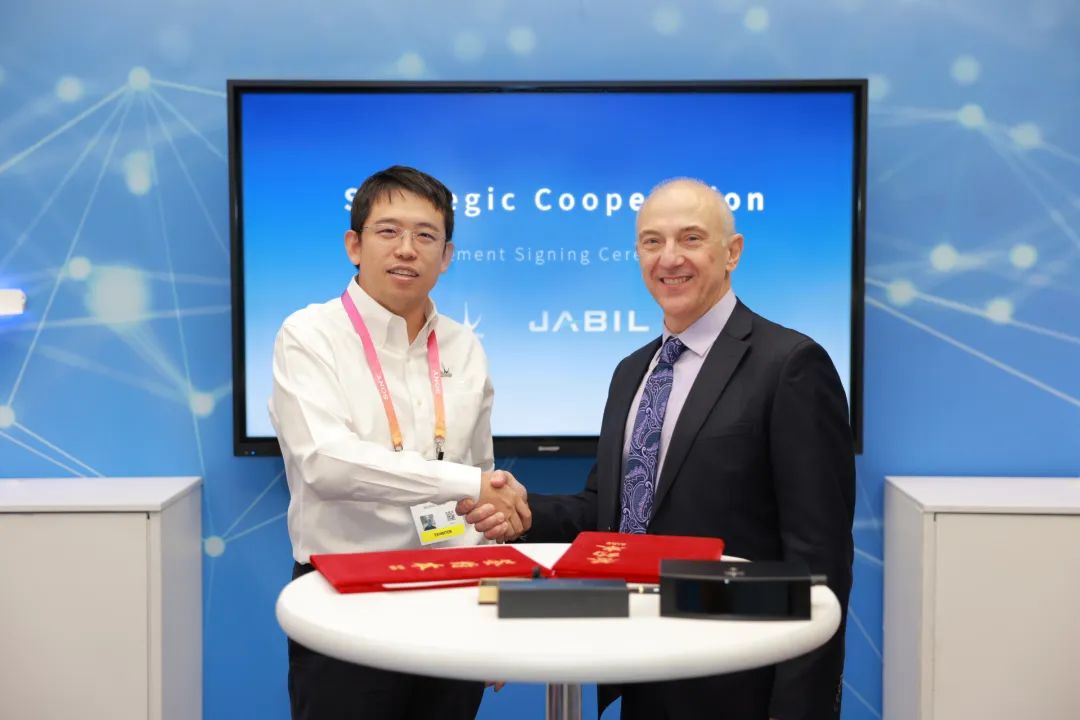 图1 签约仪式现场合影北醒CEO李远(左)捷普全球业务副总裁Angelo Efthyvoulidis(右)