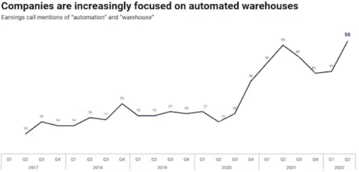 企业关注自动化立体仓库(财报发布会上提及“自动化”和“立体仓库”的次数)