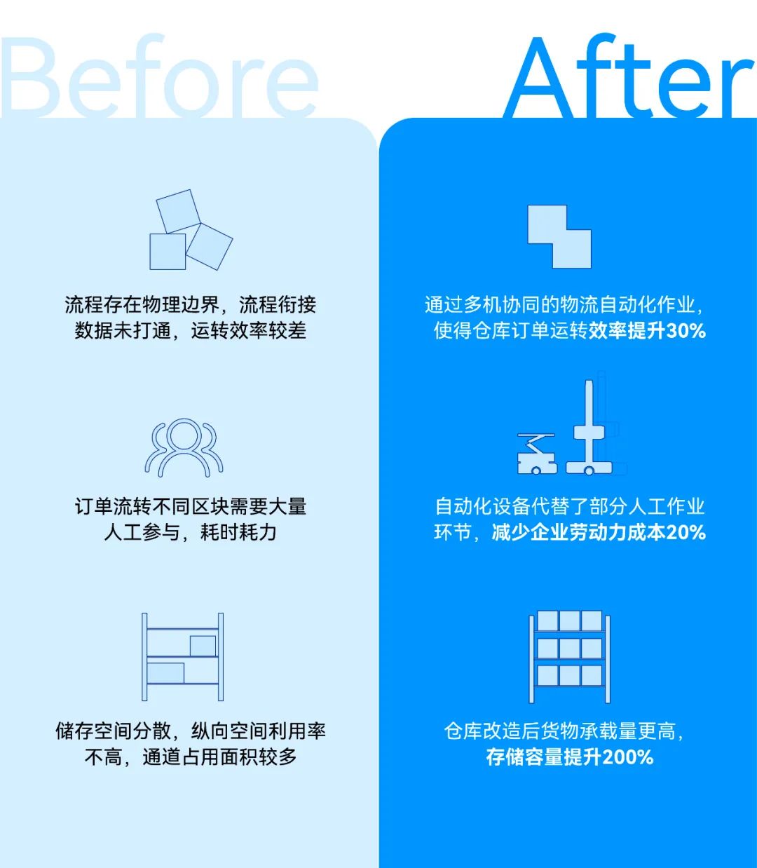 这种“为一个问题提供多种设备解法”的能力,正是基于壹悟科技混合调度软件的技术优势,帮助企业打破设备优先的思维定势,选择最优设备组合,做到真正从业务流程出发解决物流痛点。