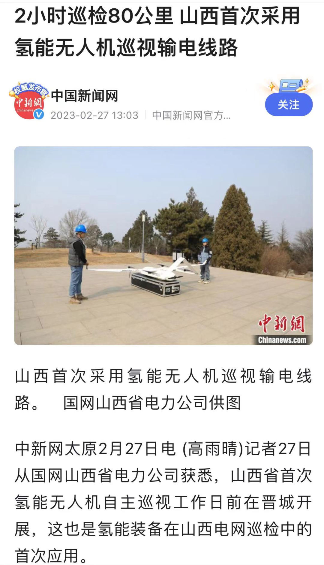 为进一步挖掘氢能无人机在电力巡检中的应用场景,纵横股份将联合国网晋城供电公司、斗山创新持续探索电网无人机低碳巡检模式,加快建设新型电力系统助力实现“双碳”目标。