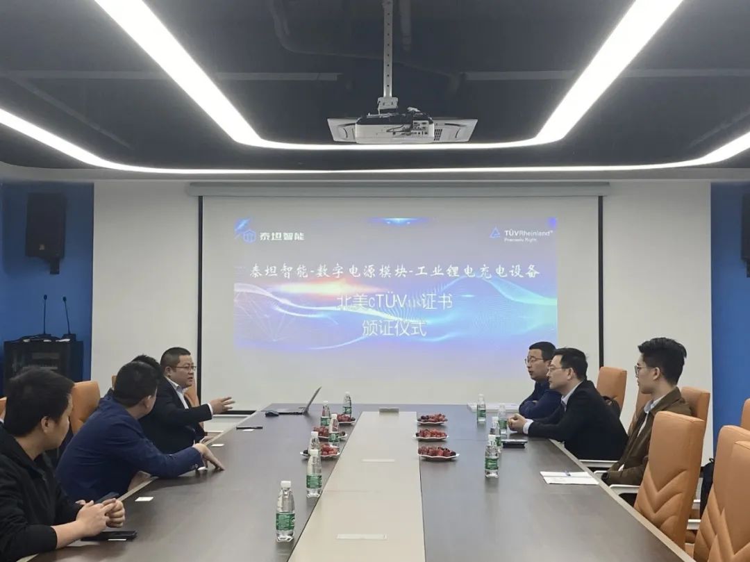 2月28日,德国莱茵TÜV大中华区(以下简称“TÜV莱茵”)为广东泰坦智能动力有限公司(以下简称“泰坦智能动力”)的工业锂电充电设备颁发了cTUVus标志的北美证书,标志着泰坦智能动力工业充电设备符合了美国职业安全与健康管理局OHSA的NRTL认可要求,可以为北美市场提供高可靠的工业充电设备。广东泰坦智能动力有限公司董事长邹建俊、常务副总经理陈健斌、副总经理李建华、营销总监许有杰;TÜV莱茵大中华区太阳能及商业产品服务电力电子产品副总经理陈雄、销售经理赵启豪、销售主管尹林玲等双方代表出席本次颁证仪式。