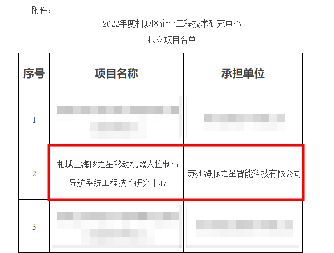 苏州市相城区科学技术局公示“2022年度相城区企业工程技术研究中心拟立项名单”,海豚之星“相城区海豚之星移动机器人控制与导航系统工程技术研究中心”项目成功上榜,获得立项。