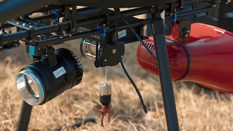 M9喊话器传输距离可达5km,100米的情况下声音可达75-80分贝, 最大150分贝。F10抛投绳尺寸小,拉力大,最大可达5kg负载。SL300是一款两轴探照灯,俯仰控制90°,有效照明距离可达400米。
