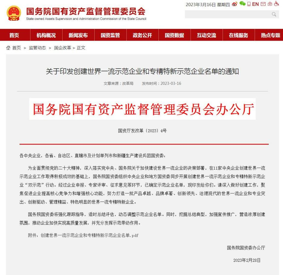 创建世界一流专精特新示范企业是国务院国资委贯彻落实党中央、国务院关于加快建设世界一流企业的决策部署,旨在聚焦促进企业提高核心竞争力和增强核心功能,选取一批专注细分市场、创新水平较高、发展质量较好、未来潜力较大的国有企业代表,发挥示范企业的带动作用,加快建设一批“专业突出、创新驱动、管理精益、特色明显”的世界一流专精特新企业。