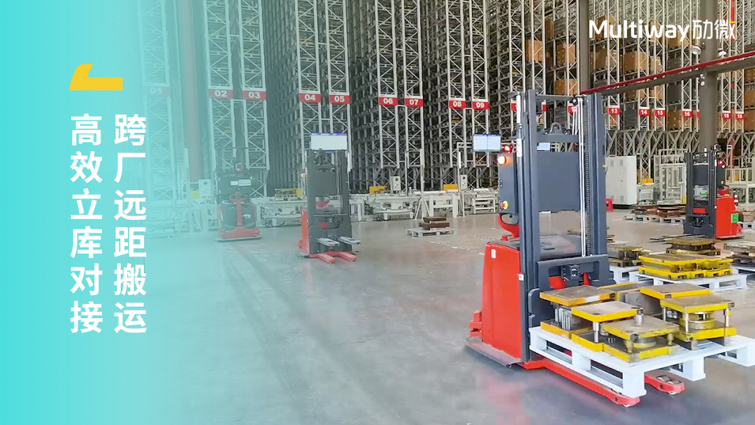 劢微机器人导入“堆高式无人叉车MW-L16”及其柔性化智能物流解决方案,从AB工厂、立体仓库到RJ工厂,实现跨厂区物料的高效运输和库存可视化管理,推动智能化的生产及仓储物流系统建设。