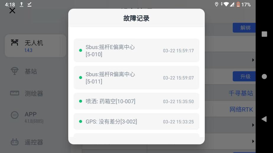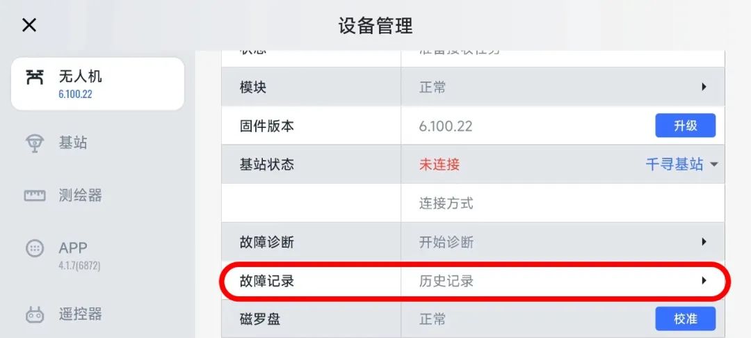 极目智农PRO中,可显示无人机当前故障,并能查看无人机历史遗留故障。方便用户进行故障追溯,提高问题排查效率。