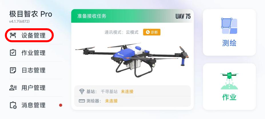 极目智农PRO中,新增测绘器固件升级功能,用户按以下操作流程升级后,测绘器搜星速度加快,可更快进入打点模式。