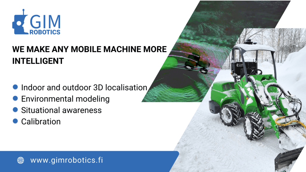 GIM Robotics起源于赫尔辛基科技大学自动化技术实验室,该实验室由Halme教授于1985年创立。自 2014 年以来,作为一家私营公司,GIM Robotics 的通用 3D 映射和本地化解决方案已被我们的 OEM 合作伙伴用于各种工业应用,包括农业、林业、海洋、建筑、铁路等。