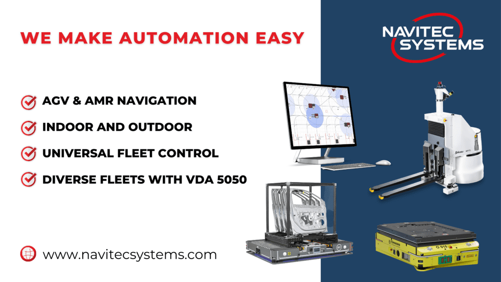 Navitec Systems 是领先的 AGV 和 AMR(导航、车辆控制和车队管理)自动化软件和服务提供商。借助 Navitec 的模块化软件堆栈和独立于硬件的基础架构,我们的客户可以使用 Universal Fleet Control 和 WMC/WCS 快速设计具有竞争力的车辆自动化解决方案。