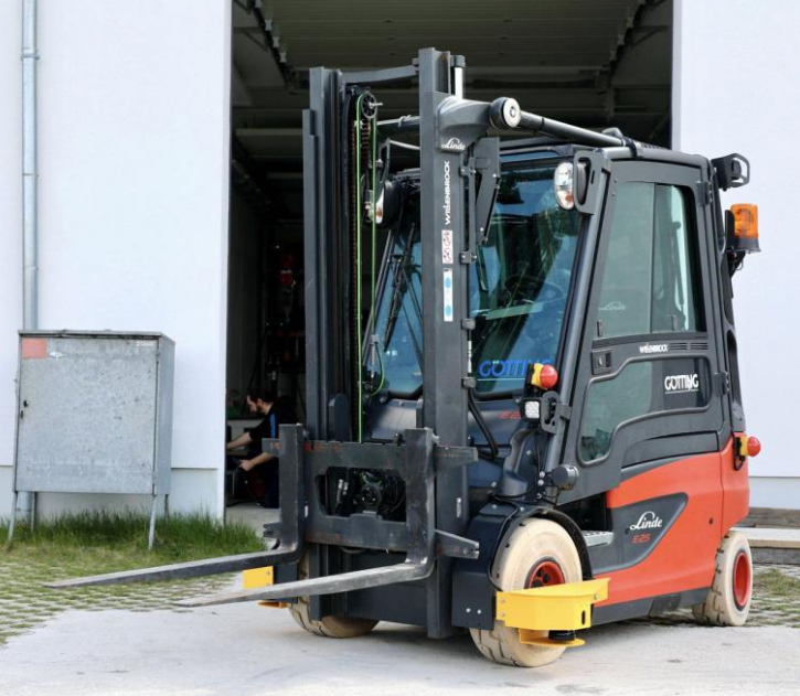 开放区域准备好一个托盘,游客可以通过控制台使用叉车取货和运输。额外的屏幕(与平板电脑相比)允许同时显示多个摄像头图像,这尤其为缺乏经验的操作员提供了更好的概览,并能够更精确地处理运输的货物。