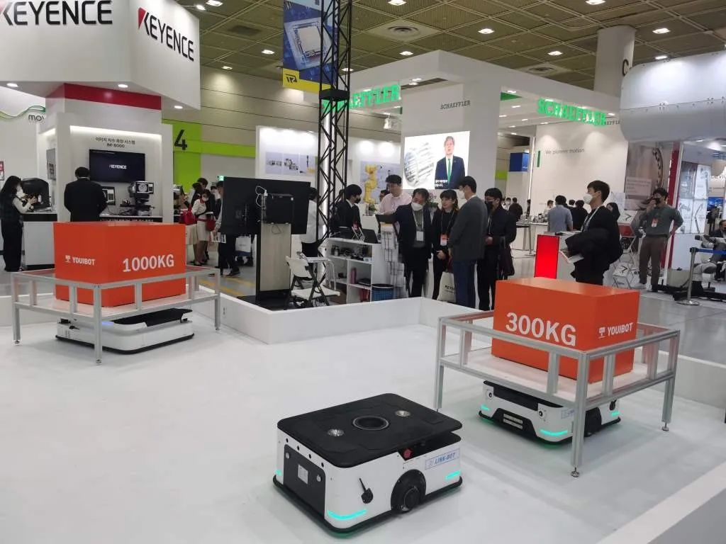 本届展会中,优艾智合与韩国合作伙伴Telstar Hommel联合参展,共同展示L300、L1000等移动机器人产品,获得业内人士广泛关注。