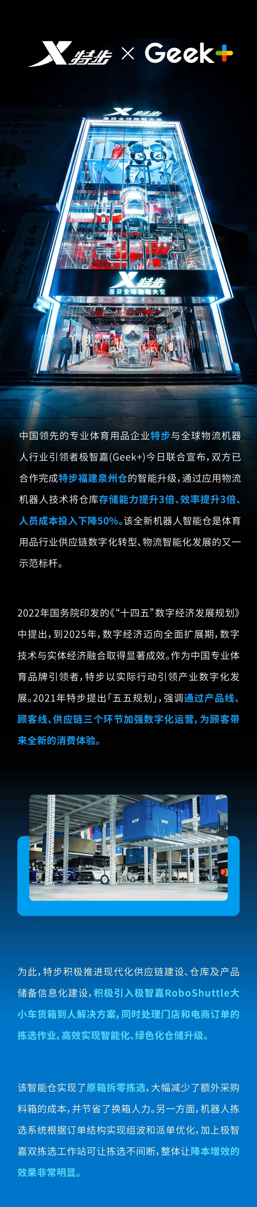 特步携手极智嘉打造机器人智能仓,共推体育用品行业供应链数字化转型