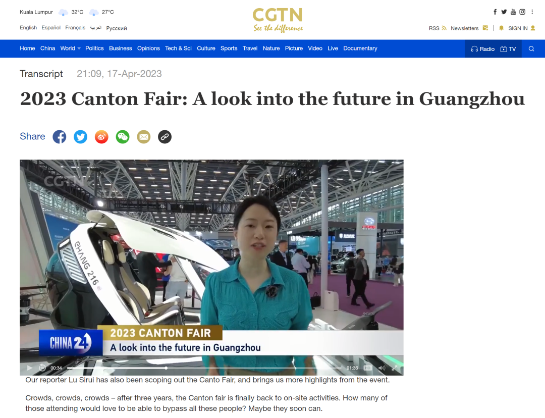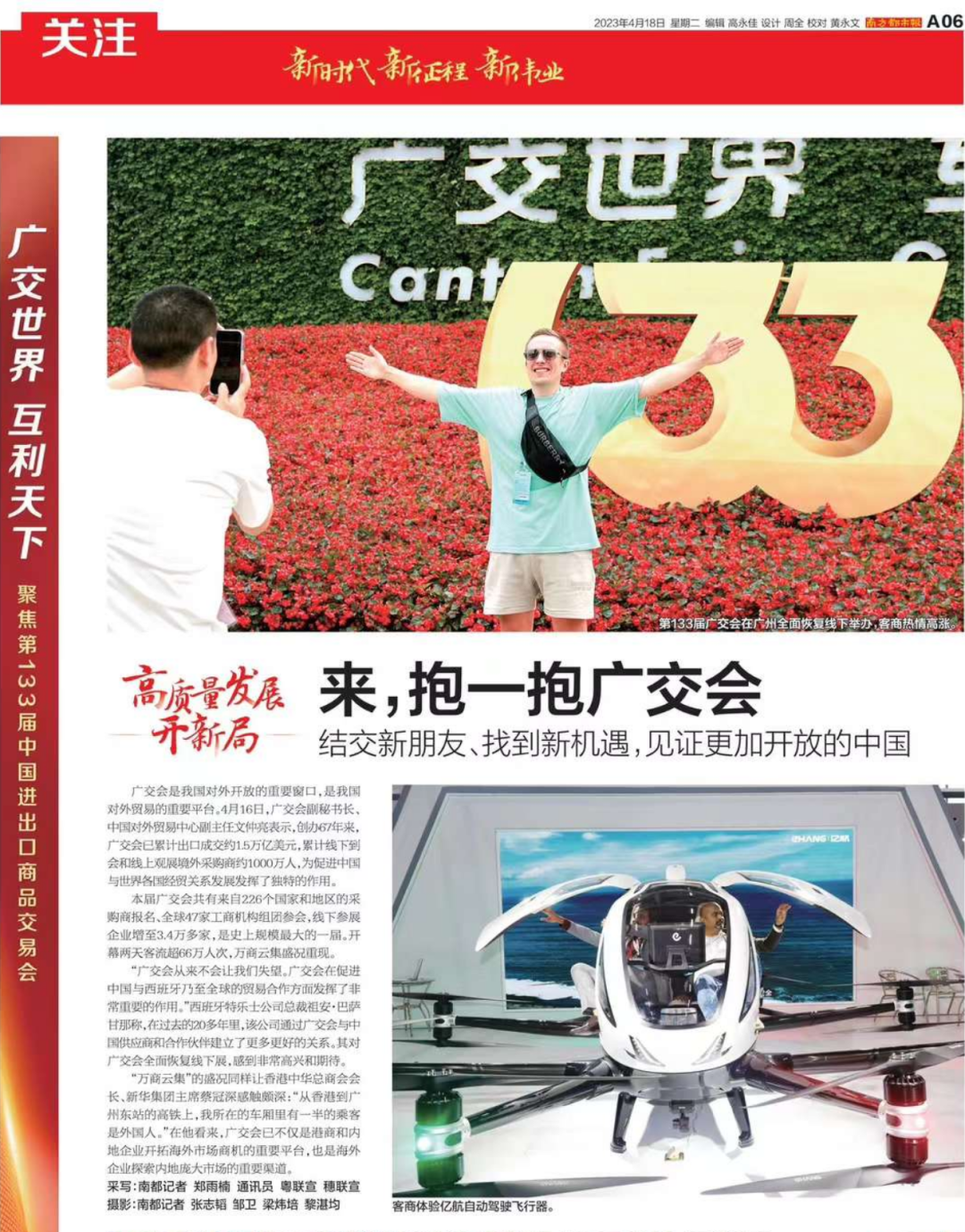 会展期间,中央广播电视总台央视新闻、央视财经、央视大湾区之声、总台CGTN、新华社、中新社、中国日报、广东电视台、大湾区卫视、南方都市报、界面新闻、21世纪经济报道、证券日报、广州日报、大公报及日本共同社等多家中外媒体通过视频直播、新闻报道全方位展示亿航智能先进城市空中交通的魅力和价值。