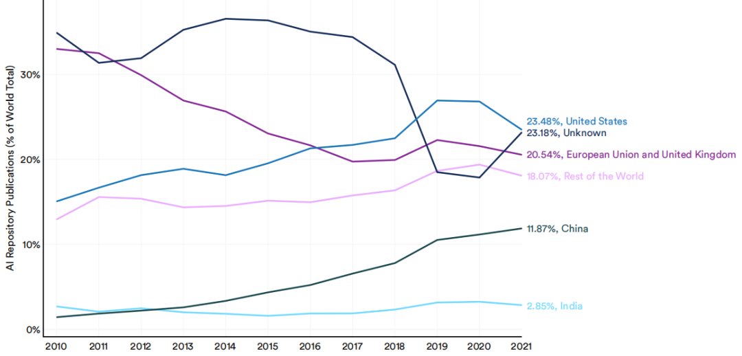 (资料来源:美国安全与新兴技术中心,2022年|图表:2023年人工智能指数报告)
