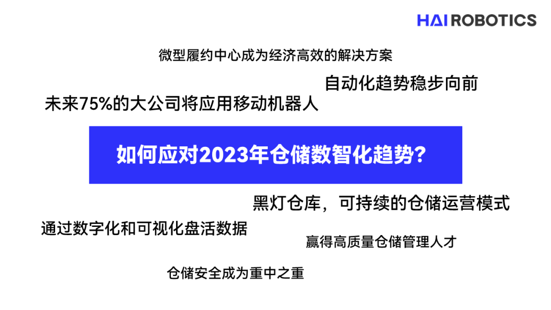 以上趋势很可能在2023年及以后塑造仓储行业,能够适应并快速采取应对措施的仓库运营商更有可能在2023年获得商业成功。数据引用:①Statista (2022). Retail e-commerce sales worldwide from 2014 to 2026②Gartner (2022). Gartner Predicts the Future of Supply Chain Technology③Interact Analysis (2022). Warehousing sector poised for 5% growth up to 2027