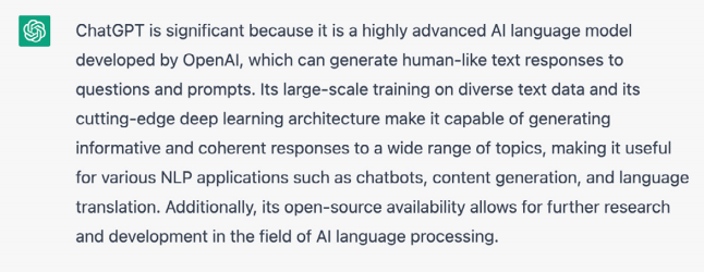 ChatGPT是一个令人印象深刻的、可公开使用的聊天机器人,能够写大学水平的论文。在推出几个月后,ChatGPT的月活跃用户达到了1亿,使其成为历史上增长最快的消费者应用程序。ChatGPT的发布结束了生成性人工智能成为时代精神的一部分的一年,并提出了对人工智能将对人类未来产生的影响的质疑。