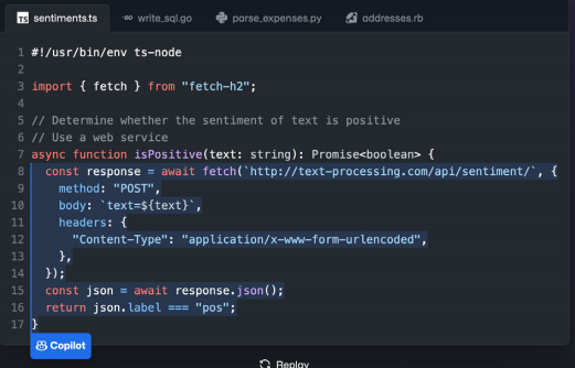 副驾驶是一个生成式人工智能系统,能够将自然语言提示转换为跨多种语言的编码建议。类似的系统包括OpenAI的法本和销售部队的CodeGen。调查显示,副驾驶可以让程序员更有效率,更少沮丧。