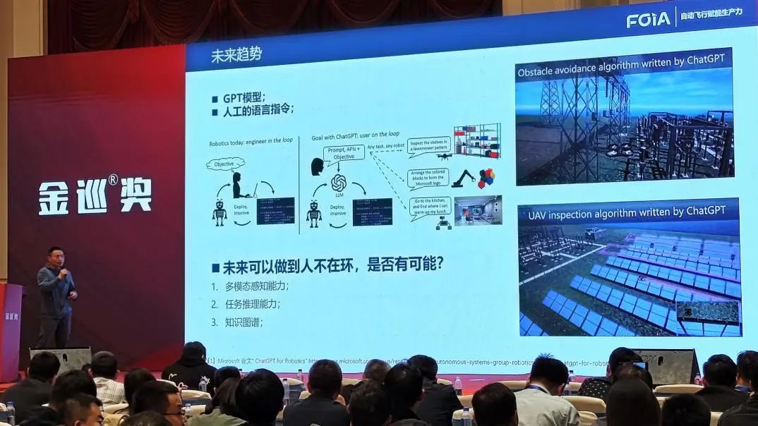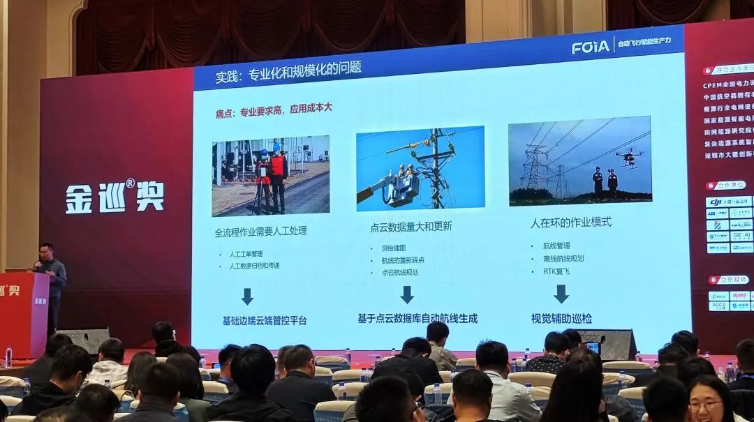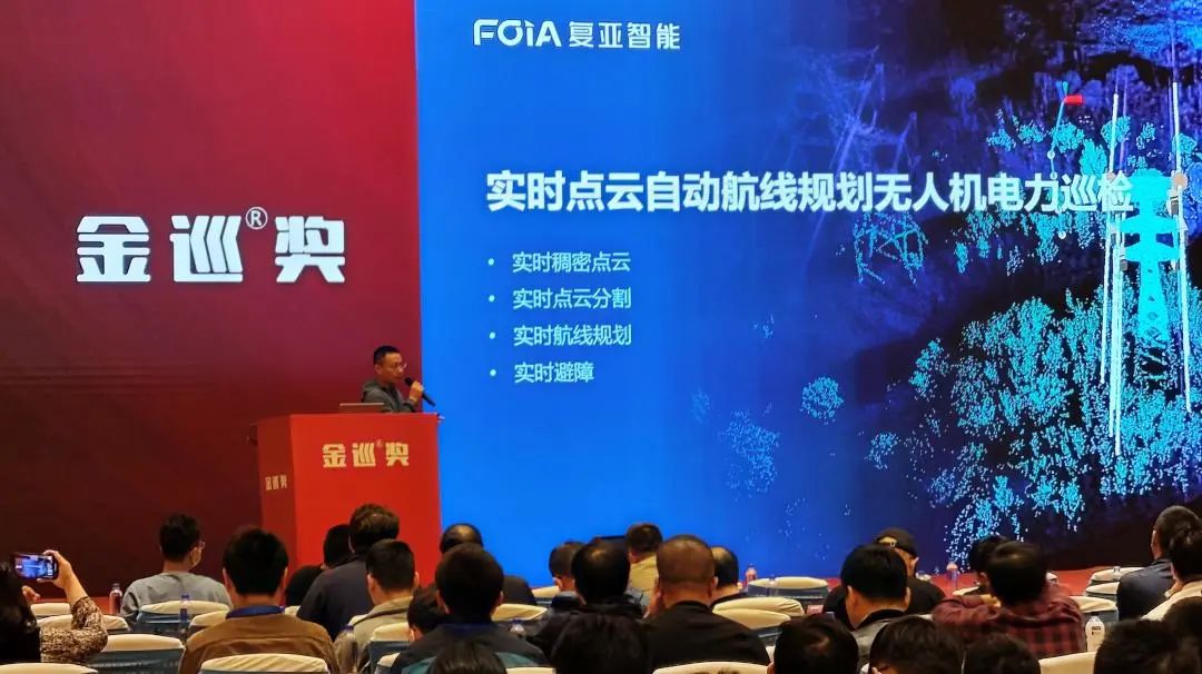 会上,复亚智能受邀领奖,并由研发总监程亮带来了以“实时点云自动航线规划无人机电力巡检”为主题的分享和交流。