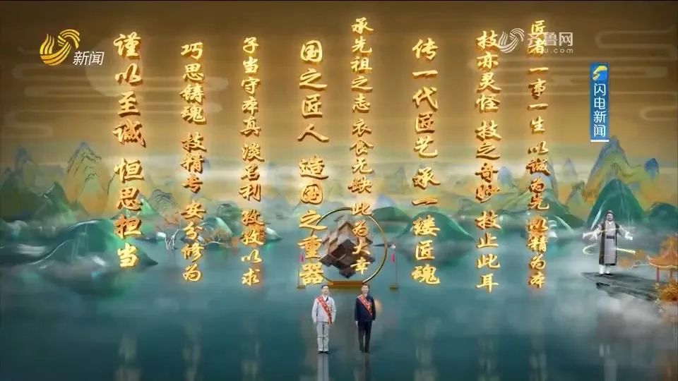 在激动人心的“匠心时刻”,中国古代劳动人民智慧的象征、被尊称为“工匠之祖”的鲁班出现在仪式现场,他用洪亮的声音宣读了颁奖词,并向邱峰、刁统武两位“鲁班首席工匠”颁发了象征荣誉的鲁班锁。这一刻,跨越两千多年的工匠精神在他们之间实现了传承与弘扬。