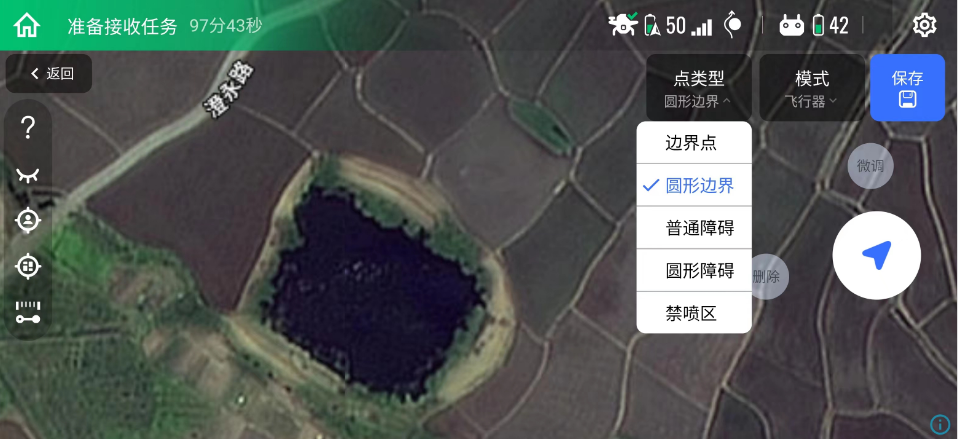 APP新增圆形地块测绘,方便一些圆形地块的快速测绘,进入测绘界面选择圆形边界。