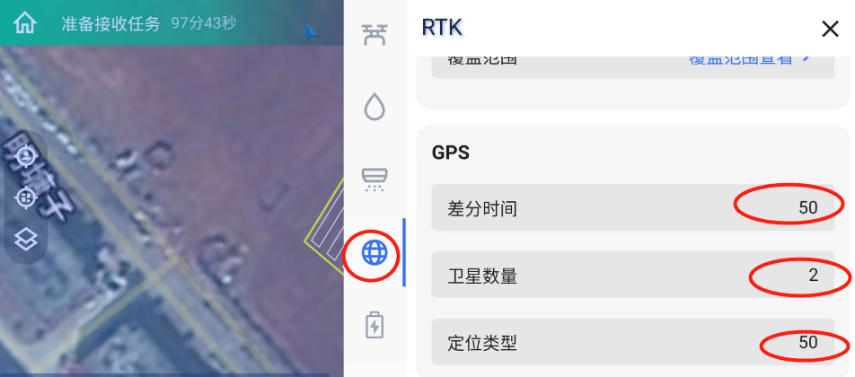 差分时间正常为1-2左右,时间越长证明与基站连接不通畅,可检查网络或与移动基站连接情况。卫星数量正常空阔地带可达到40颗以上,如长时间无法进入RTK可确认卫星数量是否充足。定位类型为50证明已进入RTK。