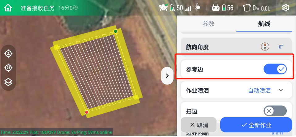 ▶ 新增手绘航线,选择线段设置喷洒/不喷洒