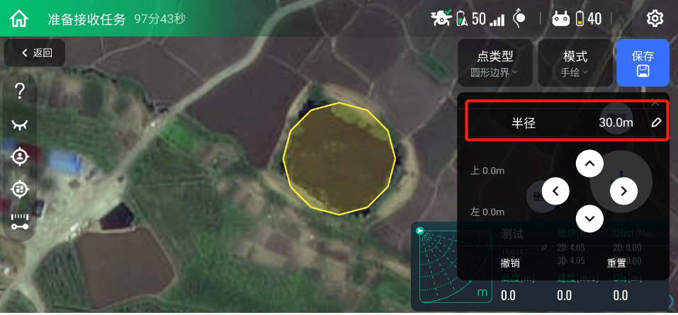 选择圆形地块的中心点击生成地块,默认半径为50m,可以点击微调进行地块大小的调整。