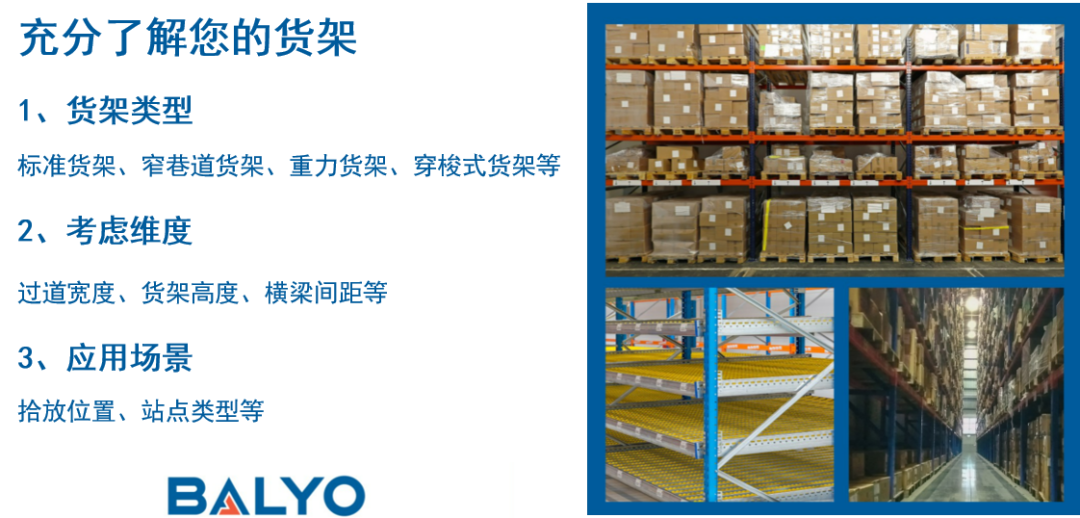 在选择机器人之前,您应该充分了解仓库的考虑货架类型、考虑不同的参数以及当前的作业场景