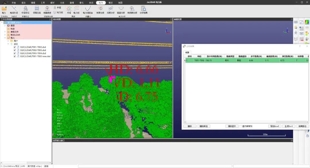 JoLiDAR点云处理软件提供一键切档分类、杆塔信息化、航点规划,以及电力通道树障、交跨、弧垂、树倾倒分析、精细巡检、平台对接等行业应用功能。单个软件实现从数据解析、数据处理、电力分析报告至内网平台对接等电力巡检所有功能。