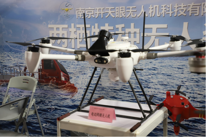5月8日,为期三天的第二届长三角国际应急减灾和救援博览会在国家会展中心(上海)开幕。展会现场多种应急减灾和救援新装备、新技术集中展出。南京开天眼无人机携飞行救生圈、飞行救援艇、智能飞行浮标、电动两栖无人机、油电混动两栖无人机亮相该展。