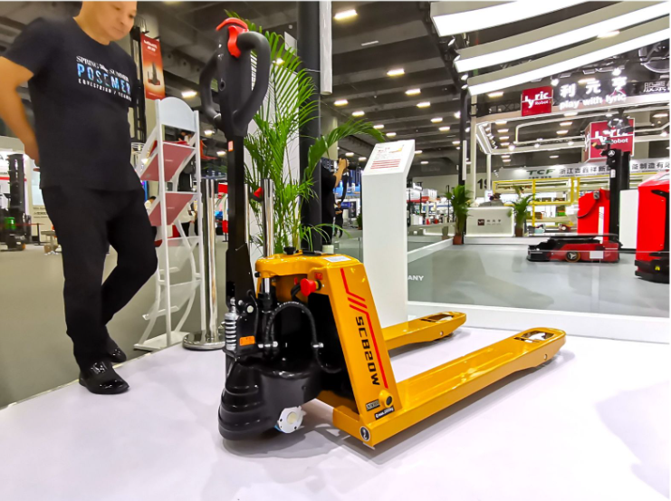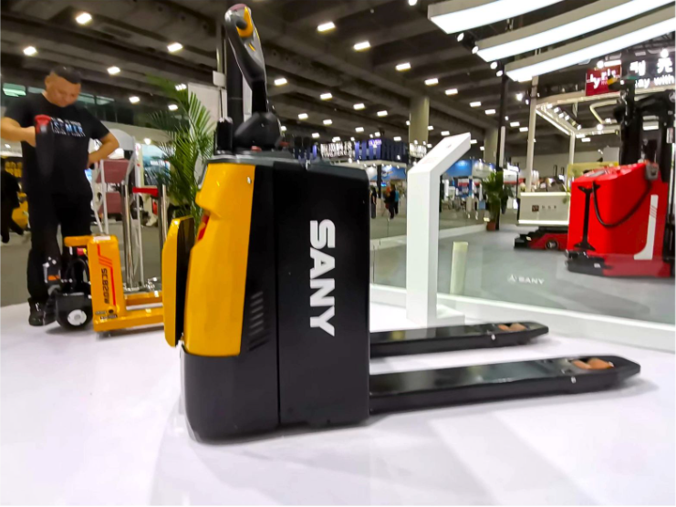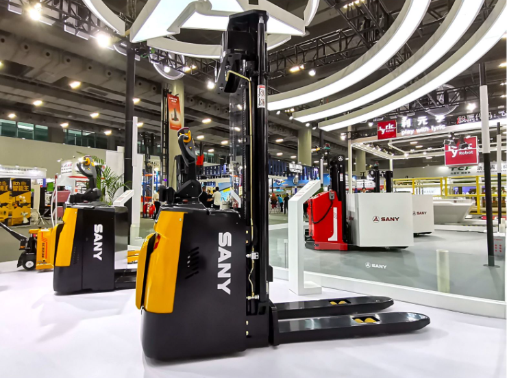 展品系列二:三一机器人的智能锂电叉车系列产品采用新能源汽车平台,核心部件采用IP67防护等级设计,可靠耐用,具有超长续航能力、充电速度快(30min充电80%,1hr充满)等优点,整车效率比传统电动叉车节能20%,成本节省30%,还具有行内首创的三电系统五年质保的极致服务。