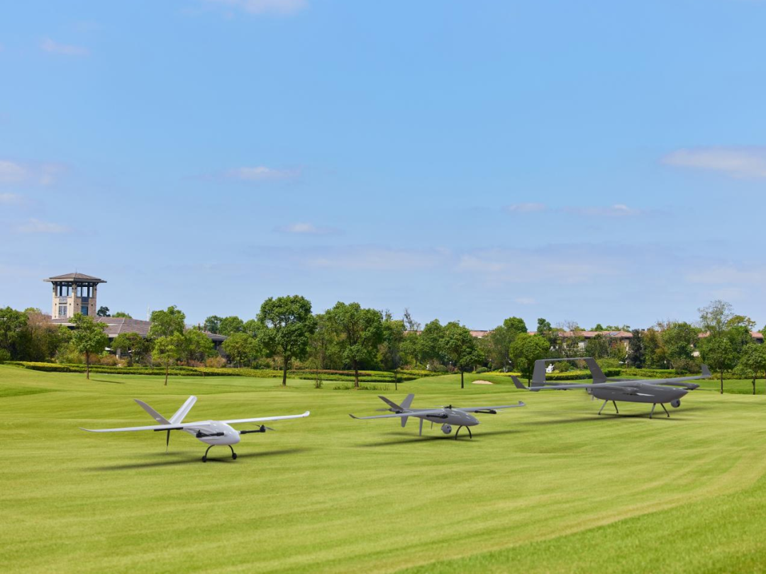 首先飞行V500,V500垂直起飞离地3m左右启动发动机,待V500升至离地40m高度,准备以多旋翼模式转换为固定翼模式进入巡航任务时,V330PLUS点击解锁自动飞行。待V330PLUS飞行至设定高度后,可以展示油电混合V500与电动V330PLUS同时飞行的场景。