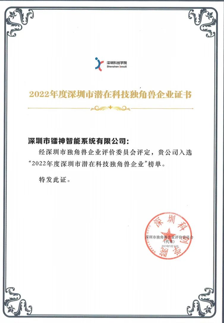 5月31日,由深圳市工业和信息化局指导,深圳科创学院主办的《2023年深圳市独角兽企业和潜在科技独角兽企业服务对接会》在深圳隆重召开,会上公布了“2022深圳市独角兽企业及潜在科技独角兽企业榜单”,镭神智能获评“深圳市潜在科技独角兽企业”荣誉称号。