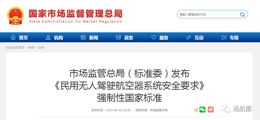 据国家市场监管总局6月2日消息,市场监管总局(标准委)近日发布了《民用无人驾驶航空器系统安全要求》强制性国家标准(GB 42590-2023),该标准由工信部组织起草,将于2024年6月1日实施。市场监管总局表示,《民用无人驾驶航空器产品安全要求》是《无人驾驶航空器飞行管理暂行条例》的配套支撑标准,适用于除航模之外的微型、轻型和小型民用无人机,提出了电子围栏、远程识别、应急处置、结构强度、机体结构、整机跌落、动力能源系统、可控性、防差错、感知和避让、数据链保护、电磁兼容性、抗风性、噪声、灯光、标识、使用说明书等17个方面的强制性技术要求及相应的试验方法。据通航圈了解,在《民用无人驾驶航空器系统安全要求》 之前,我国民用无人机领域的国家标准还有2018年实施的《民用无人驾驶航空器系统分类及分级》、2020年实施的《无人驾驶航空器系统术语》、2021年实施的《民用轻小型无人机系统安全性通用要求》等,但《民用无人驾驶航空器系统安全要求》 却是我国民用无人机领域首项强制性国家标准。