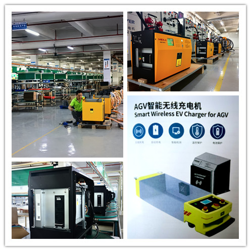 中国公司广东爱普拉新能源技术股份有限公司也在今年5月推出0.6KW到30KW功率的AGV无线充电系统产品,该无线充电运用电磁感应原理,其原理同变压器相似,通过在发送和接收端各安装线圈,发射端线圈经电力作用向外界发出电磁信号,接收端线圈收到电磁信号并且将电磁信号转变为电流,从而达到无线充电的目的,其无线供电技术及2.4G手柄技术,让充电器摆脱了线路的限制,实现电器跟电源完全分开;安全性更优;产品实现非接触式无线充电,能避免多次对接金属表面氧化,磨损等造成的接触不良,所导至充电速度降低、充电接口发热或者损坏等相关问题。模组传输效率可以达到92%以上;为客户提供一站式无线充电解决方案,产品应用于AGV小车、巡检机器人、物流分拣机器人、电动叉车、服务机器人、无人机、电动工具、园林工具等服务机器人领域。