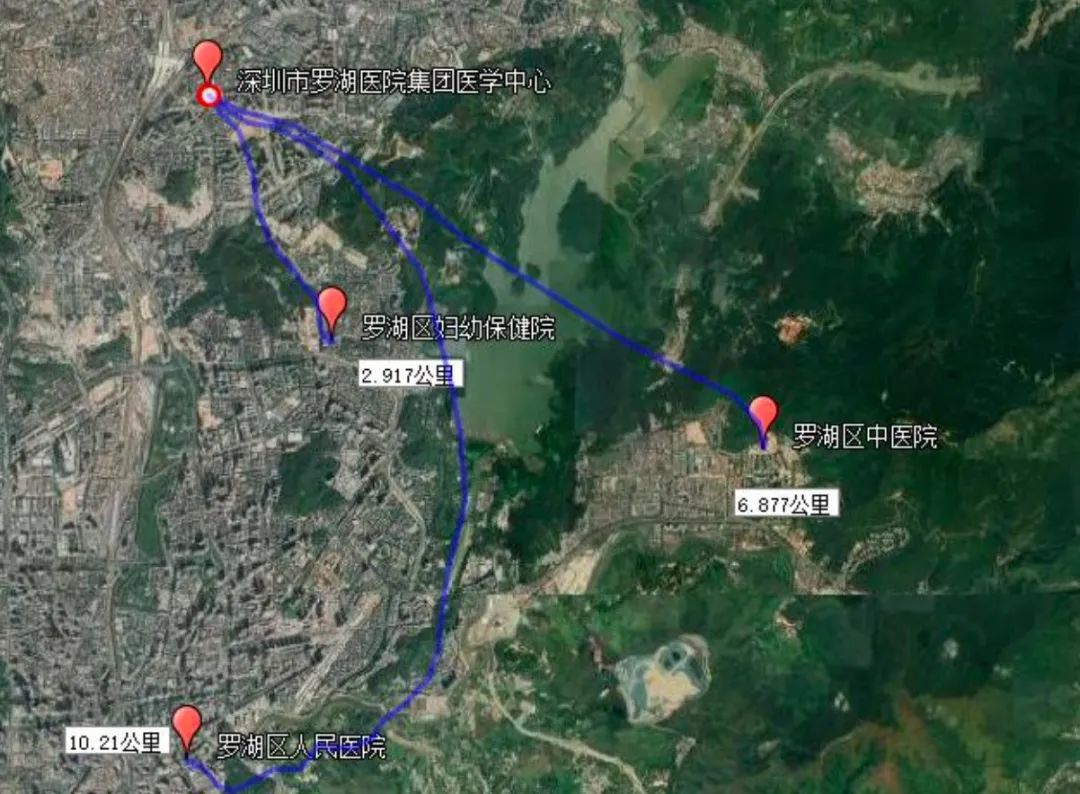 各医院至医学中心航线最远距离为10km,均在无人机航程范围内。