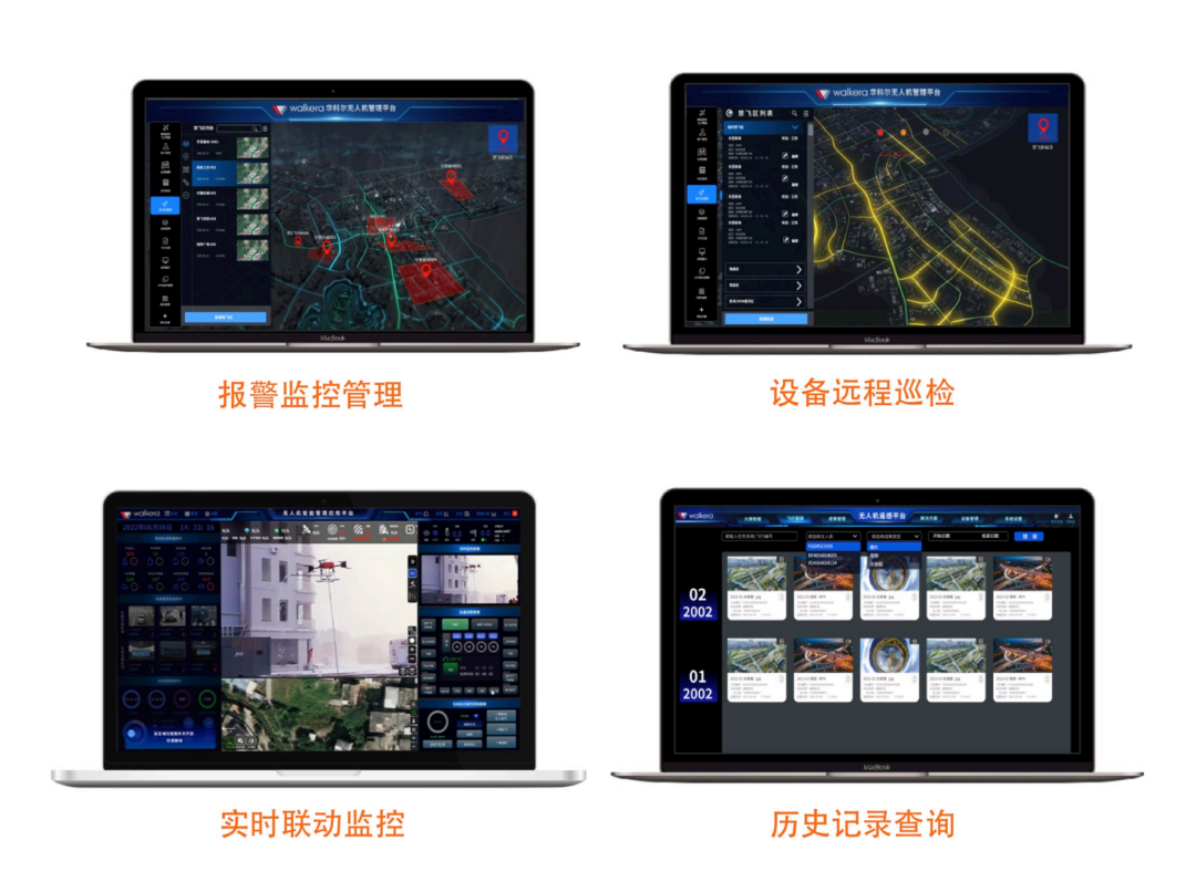 消防无人机自动飞行到火点作业,期间可通过无人机系统后台,通过5G网络远程操作无人机飞行作业,实时回传现场火情图像到指挥中心。作业完成后,无人机自动高精度降落到起飞平台。