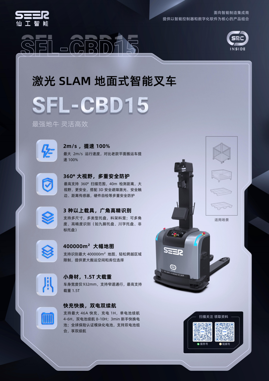 7 月 11 日-13 日,Vision China 2023 上海机器视觉展在上海国家会展中心举办。仙工智能合作伙伴 3D 机器视觉领先企业图漾科技携多款 3D 视觉方案亮相,并重磅展出仙工智能 2023 新款智能叉车 SFL-CBD15。 图漾科技展台设置单独的移动机器人动态展示区,SFL-CBD15 做正反向叉取搬运作业。 SFL-CBD15 视觉系统配备图漾 3D 工业相机 FM851-E2,高帧率大视野,可达毫米级精度,适配多种物流应用场景,性能稳定,安装简单易维护。 专业的 3D 工业相机提升 AMR 运行精确度,支持 AMR 自动识别栈板并进行叉取,保障整个搬运过程更加稳定可靠。 SFL-CBD15 是今年仙工智能与合作伙伴合力联合打造的一款地面式智能叉车,身材小巧负载不减,宽度不到 1m 完美适应窄道,负载更强可达 1.5T。 除了 3D 工业相机,SFL-CBD15 的电池模块也配备仙工智能与合作伙伴博力威最新推出的模块电池,支持最大 46A 快充,充电 1 小时,单电池续航 4-6 小时,双电池续航 8-10 小时,电池快换只需 3 分钟,节能更高效。 今年上半年,50+ 家合作伙伴携仙工智能 AMR 标准产品出展全球。仙工智能致力于持续深化面向智能制造集成商战略,为全球合作伙伴提供一站式造车解决方案和标准化产品组合。 未来,仙工智能将持续拓展更多上下游产业链合作伙伴,共建蓬勃向上、和谐共赢的生态氛围。