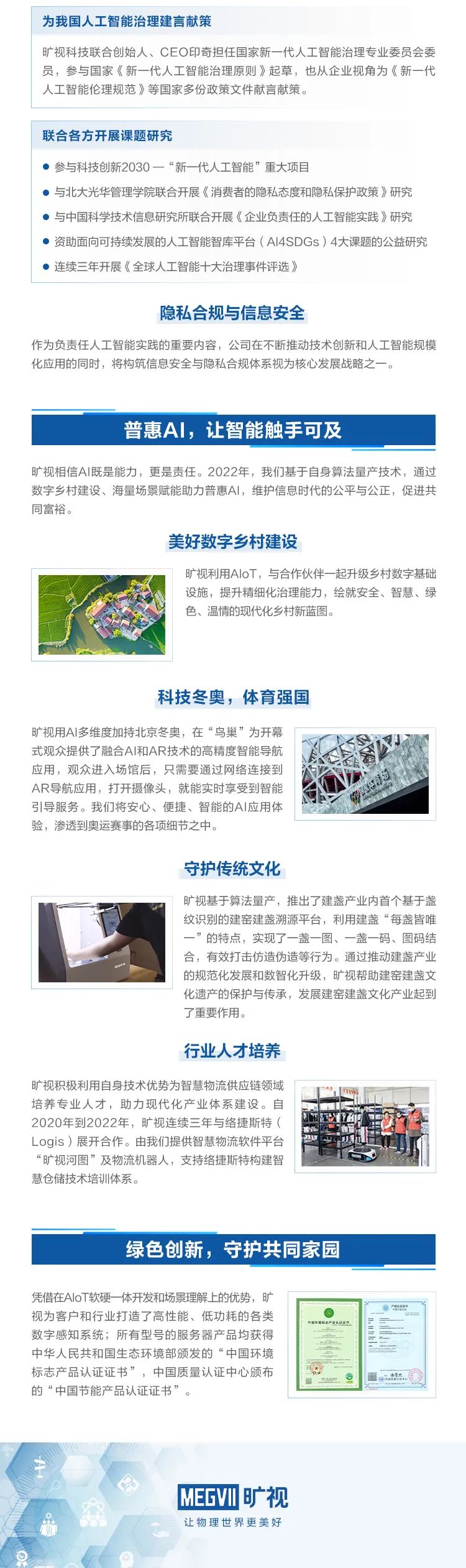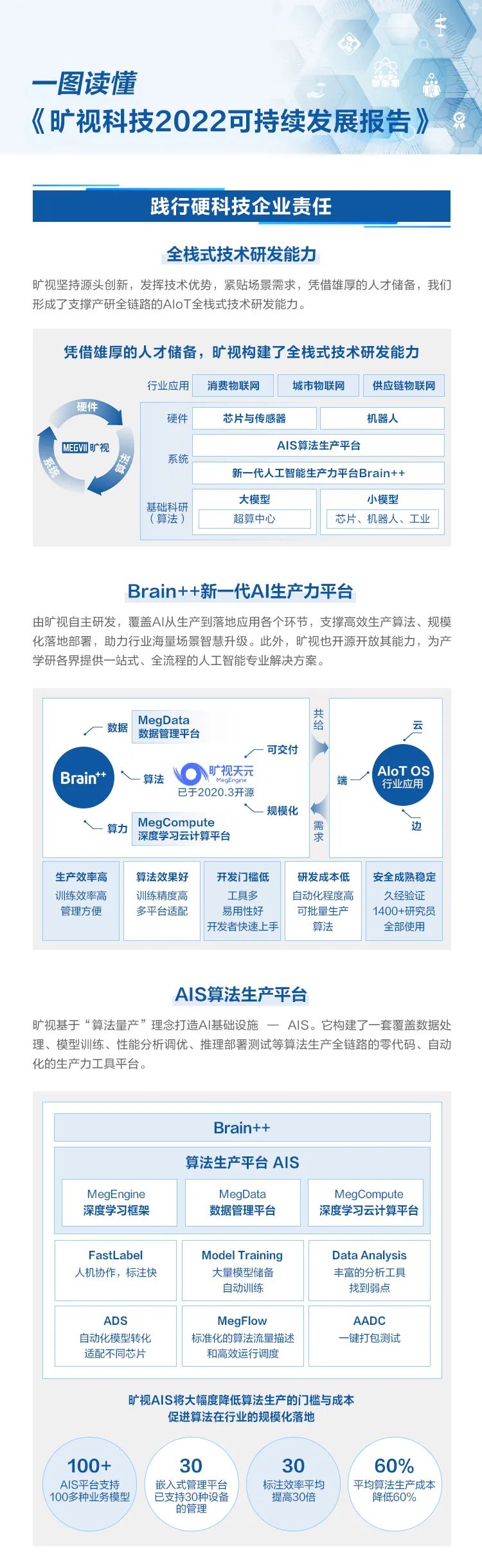 近日,旷视科技正式发布『2022年可持续发展报告 - 让物理世界更美好』,报告通过“践行硬科技企业责任、科技促进实体经济高质量发展、发展负责任的AI、技术普惠,让AI触手可及、绿色创新,守护共同家园”等内容,全面展示了旷视的社会价值理念与实践。