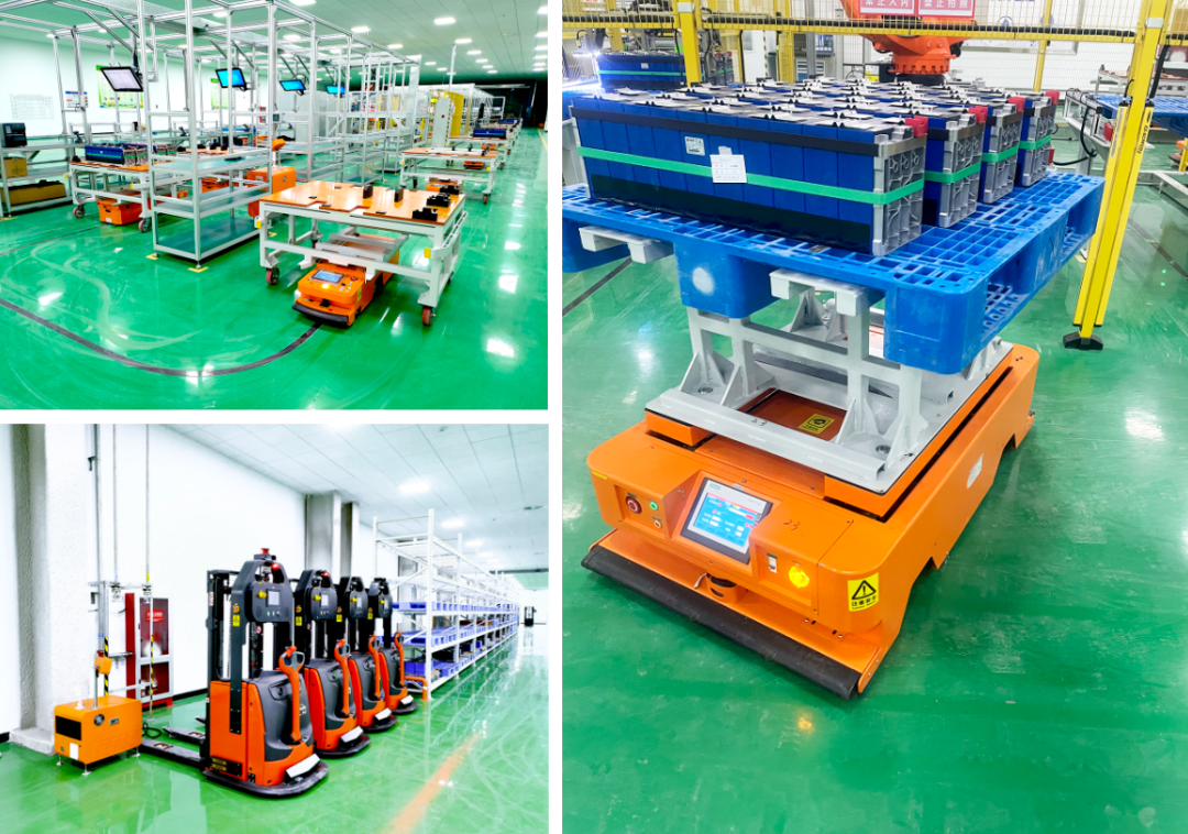 ◆该项目应用了潜伏举升移动机器人、单向潜伏牵引机器人、双向潜伏牵引机器人、堆垛式智能叉车、自动充电站 、CRMS移动机器人智控系统、无线对接系统、光电检测系统等。◆PACK装配线由潜伏牵引式移动机器人组成装配环线,导航方式为磁导航,移动机器人牵引工装小车携带PACK箱体进行转运,工装小车可与移动机器人分离进行更换。自动模组线及PACK装配线由潜伏牵引式、潜伏举升式移动机器人来完成原料自动配送,半成品、成品下线转存。模组线由潜伏举升式移动机器人实现产品下线至缓存的自动转运、入库管理。CRMS智控系统与WMS系统交互关联,实现物流高效管理。04【 方 案 优 势】调度效率高