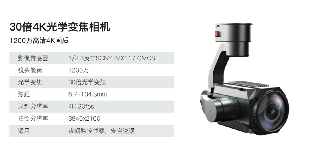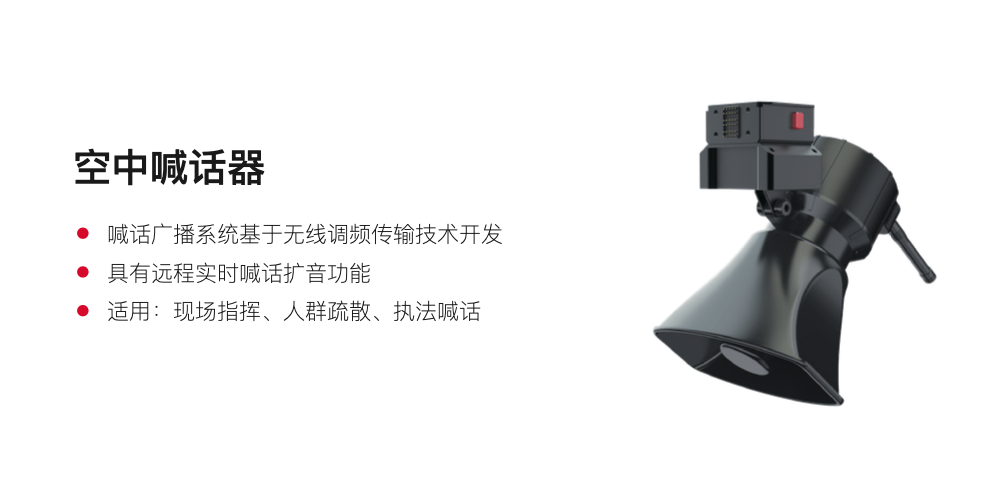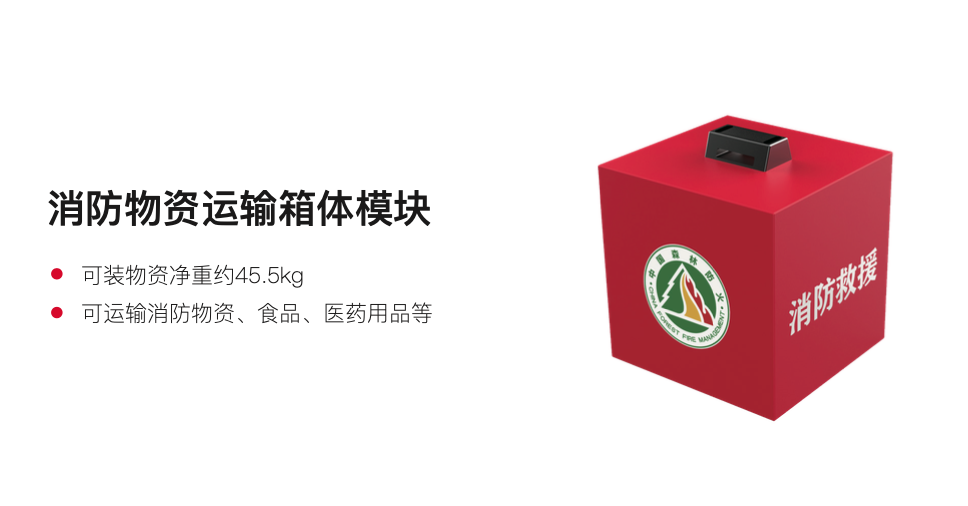 超大载重:最大载重可达80公斤,相当于一位成年男子的体重,可搭载物品投放装置、救援设备、灭火设备等多种应用设备。
