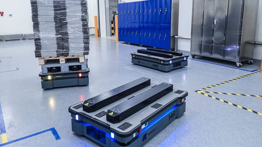又如在诺和诺德天津工厂,五台 MiR500 显著改进了仓库物流情况。每次行程的距离为 100 米,路线包含 3-4 个弯道和拥挤区域。凭借其自主技术,MiR500 每周为诺和诺德节省35 个工时。